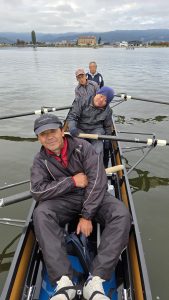 夏季に大量発生したヒシや藻など水草がまだ残る諏訪湖の現状を確認しながらの体験乗艇となりましたが、小泉区長は「ボートは初めての体験。難しかったけど楽しく漕ぐことができました。気持ちを合わせないと進まないボートからチームワークの大切さを学びました。経験を区行政に生かしていきたい」と話していました。来年の第45回下諏訪レガッタ出場に「楽しかったから出てもいいかな」と前向きに話す役員もいました。