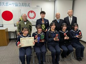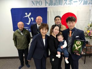 令和7年度のNPO下諏訪町スポーツ協会表彰式が12月12日夜、下諏訪総合運動場スポーツコミュニティーセンターでありました。ローイング関係では、栄光賞に岐阜県川辺町で10月行われた第34回全国中学新人競漕大会の女子クオドルプルで優勝した下諏訪中学校ボート部のクルー、奨励賞に下諏訪町漕艇協会副会長の朝倉大貴さんが表彰されました。